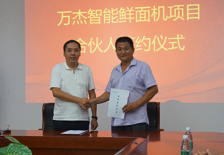 2017年8月4日,萬杰智能總部又迎來山東省兩位合作伙伴,山東省泰安市華任經貿有限公司劉總、山東省曲阜市鑫海商貿有限公司楊總分別與萬杰智能簽署了《智能鮮面機合伙人合作協議》。 此次,泰安、曲阜兩市的加入,標志著萬杰智能鮮面機項目山東市場正式開啟。至此,萬杰智能鮮面機全國招商突飛猛進,赤峰、新鄉、鄭州兩個區域、鶴壁、寧波、義烏、溫州、洛陽、大慶、許昌禹州市、泰安、曲阜相繼加入,全國招商工作屢獲佳績。 萬杰智能董事長王曉杰與山東省泰安市華任經貿有限公司劉總 萬杰智能董事長王曉杰與山東省曲阜市鑫海商貿有限公司楊總 山東省是我國面食大省,尤以打鹵面最為著名和正宗,現制鮮面條的出現,將會為當地百姓面食生活的“安全、健康、營養”創造了更多可能。 得益于主食安全和模式創新,萬杰智能聚集了全國各地的事業合作伙伴,各個城市的合伙人與萬杰智能共同扛起“主食安全”的大旗。可以說,獲得收益,充其量只是門生意,而造福百姓,然后讓所有參與者共同受益,這才可稱得上是一份事業。萬杰智能鮮面機項目的合伙人正是這樣一支隊伍,做主食安全,為一方百姓,這份既有擔當,又前景可觀的事業,誠邀全國地區意向合作伙伴。 萬杰智能主食機械——為億萬家庭主食安全服務!