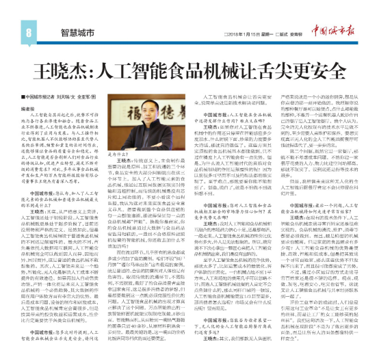 《中國城市報》點贊萬杰智能:人工智能讓舌尖更安心