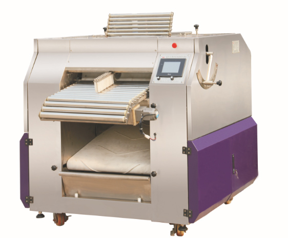 本產品為手動/自動兩用連續壓面機,適用于含水率40~60%的面團揉制。可根據情況設定壓面次數為1~99次;可以調整壓面厚度為0.8~1.8cm;能夠自動均勻地向面帶上拋灑面卜,可設定拋灑面卜量的多少; 可自行設揉面的時間(0-30sec);裝有安全防護欄及緊急安全開關,可有效保護操作者的安全;面帶在機內呈 S型連續式折迭輾壓,能增加面皮的筋性、組織密度、延展性及光澤,也可與各式輸送機(另配)搭配,形成輸送面帶的系統。